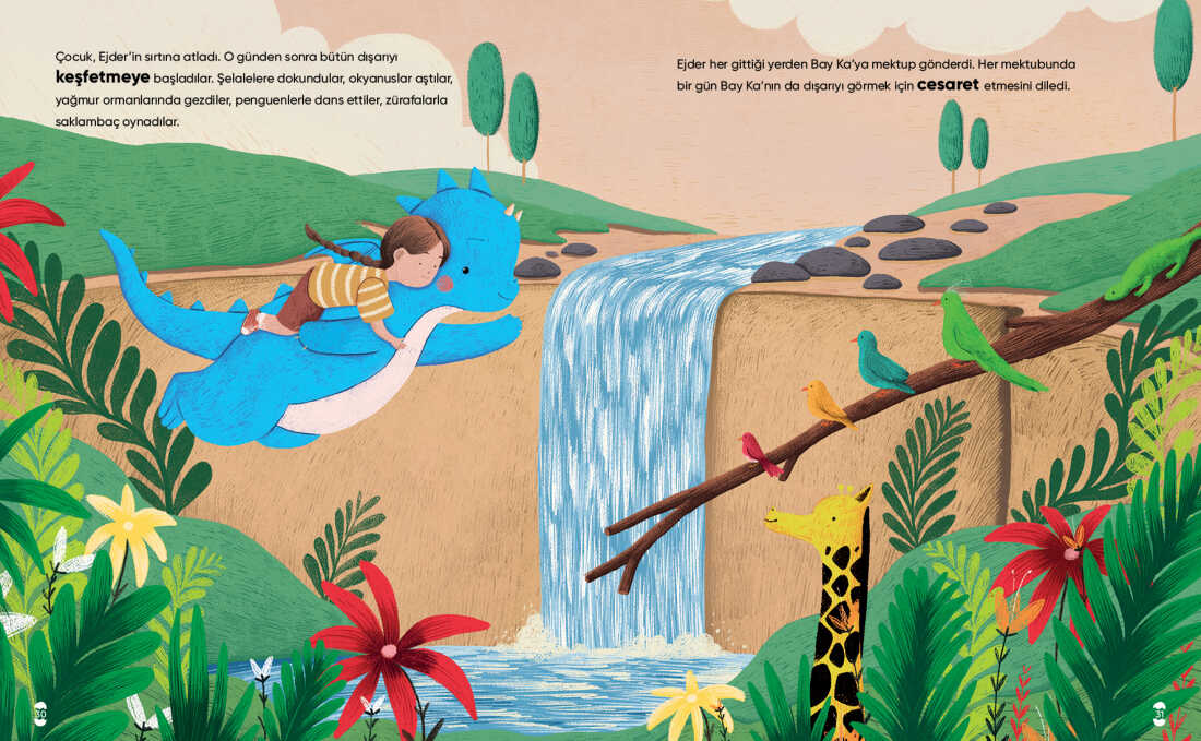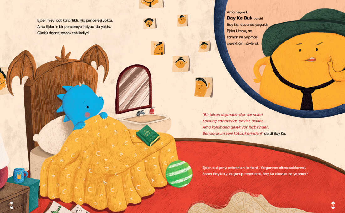 Gelince Haber VerÇok meraklı ama bir o kadar da çekingen bir ejderha yavrusu o. Hayal kurmak istiyor ama bir türlü yapamıyor. Küçücük evinde hep aynı geçiyor günleri. Dışarıdan gelen seslere içi gidiyor ama cesaret edemiyor. Hep duvarda yaşayan Bay Ka Buk’u dinliyor ama içinden başka şeyler istiyor. Kafası karışık bir ejderin biraz komik, biraz hüzünlü, biraz ürkünç serüveni Bay Ka Buk ve Ejder. Uyuyamayan Koala’nın yazarından sınırlarını aşmak, hayallerinin peşinden koşmak üzerine ilham veren sıcacık bir masal.