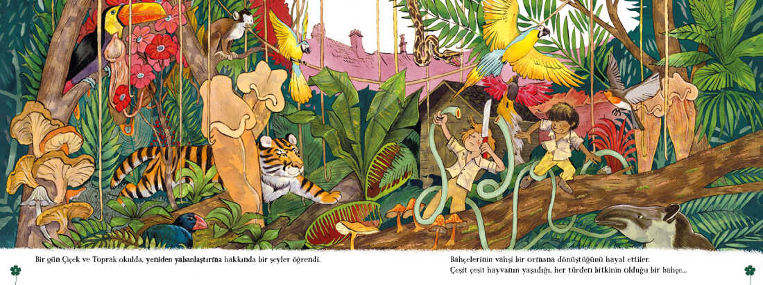 Gelince Haber VerToprak ile Çiçek'in evlerinin bahçesi neredeyse kusursuzdu. Anne ve babasının özenle biçtiği çimenler, sıra sıra diktiği çiçekler... Ama eksik bir şey vardı: Acayip düzenli ve süslü bahçeleri, vahşi yaşamdan uzak ve doğadan kopuktu. Bir gün okulda "yeniden yabanlaştırma" kavramını öğrendiler ve bahçelerinde uygulamaya karar verdiler. Çok geçmeden çeşit çeşit böcekler, kuşlar, kirpiler, kurbağalar, yabani bitkiler bahçeye yerleşmeye başladı. Arka bahçeleri küçük bir ormana dönüştü.